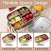 - FLEXIBLE SPACE DESIGN: This lunch box has three fixed compartments and two movable compartments, which you can freely combine to have a lunch box with three, four, or five compartments at the same time. It is very suitable for sorting and storing various foods. The large capacity of 1400ml ensures that your meals remain fresh and neatly arranged throughout the day