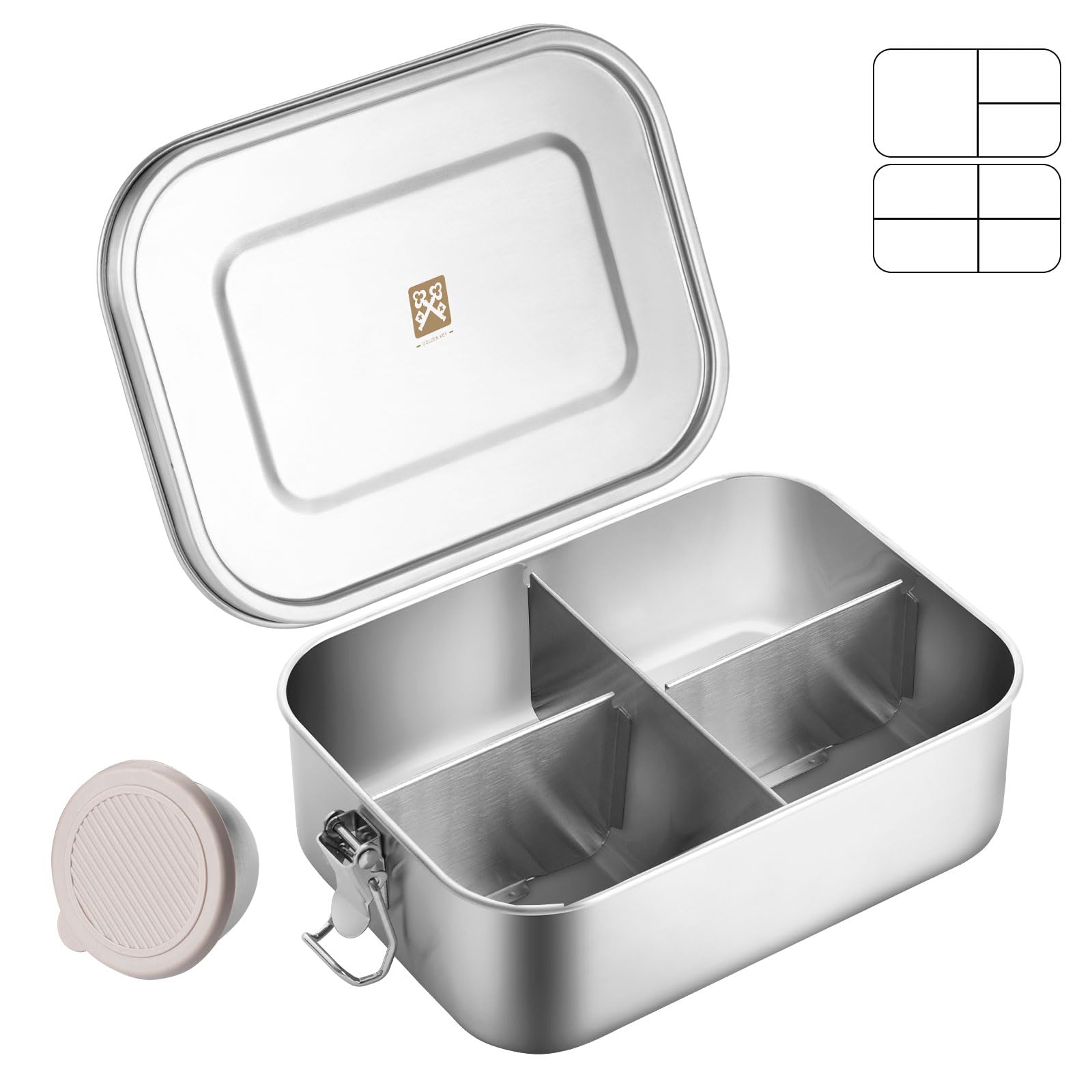 GOLDEN KEY 47QZ Stainless Steel Bento Box with 5 Compartments,1400ml Large & Thickened Metal Lunch Box for Kids or Adults,Eco-friendly Leak-Proof Container with Lockable Clips