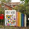 Dyrenson Pride Love Wins Rainbow Hearts Decorative Garden Flag, LGBTQ Gay Lesbian Flower Yard Outside Home Decorations, LGBT Bisexual Pansexual Burlap Outdoor Small Decor Double Sided 12 x 18