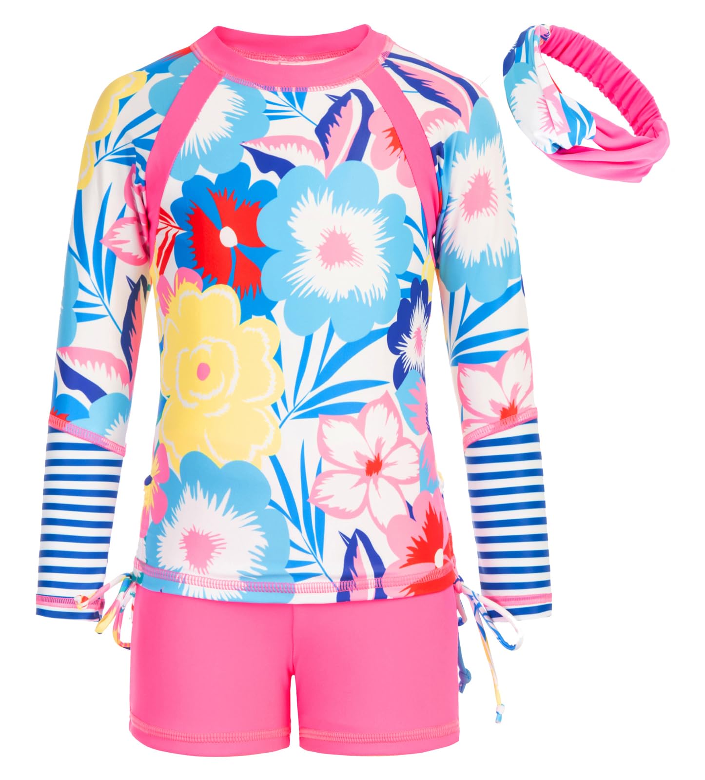 GRACE KARIN Girls 2 Piece Swimsuit Long Sleeve Rash Guard Bathing Suit Beach Sports Swimwear, Black 8Y