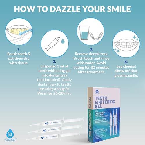 Pursonic Teeth Whitening Gel Refills - 3 Pack Whitening Gel (35% Carbamide Peroxide) for 30 Treatments - Enamel Safe Teeth Whitening Gel for Trays in Syringes