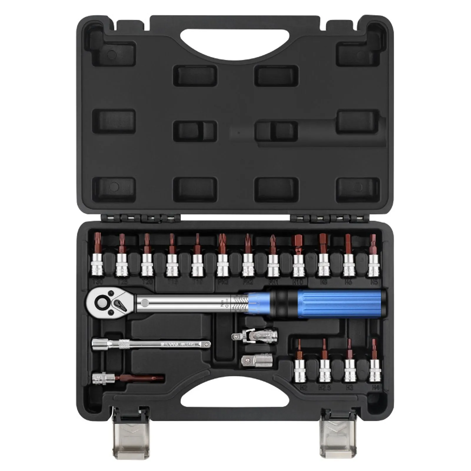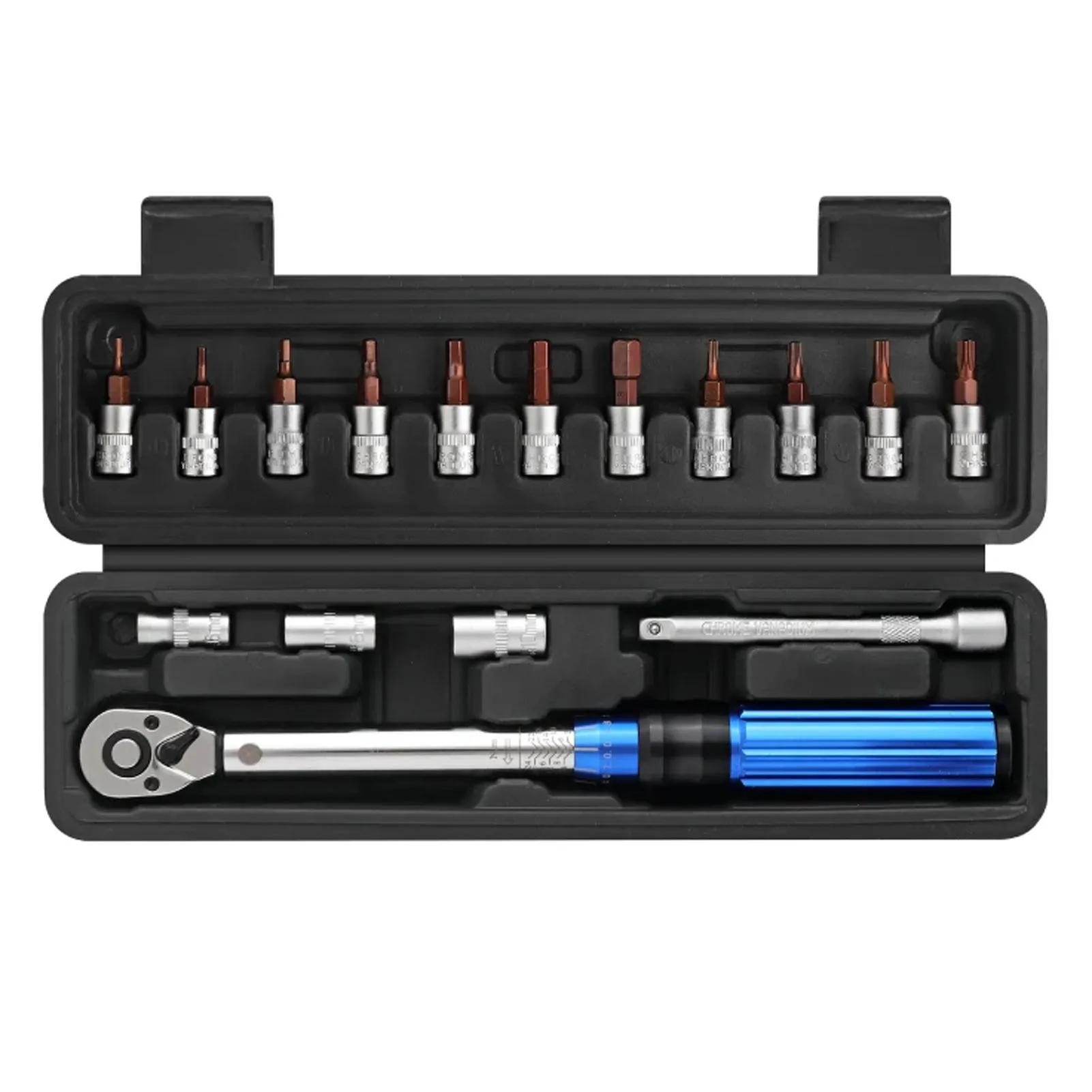 - Compact Set: our 1/4" torque screwdriver set includes the torque screwdriver, 5 phillips bits, 5 pozidriv bits, 5 slotted bits, 5 hex bits, 10 trox bits, 6 metric hex bits, 4 square bits, 1 100mm shaft extension, 1 T-bar handle, and 1 1/4" socket