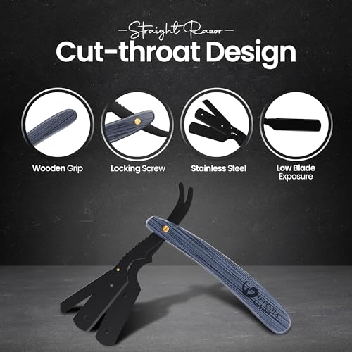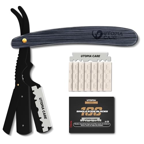 Utopia Care Straight Razors For Men, Professional Barber Straight Edge Razor with 100 Single Edge Blades, Stainless Steel, Beard Shaving Kit For Men, Premium Smooth Natural Wooden Grip, Black
