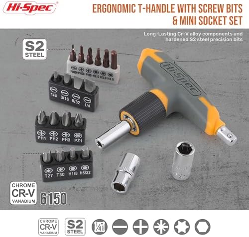 Hi-Spec 30pc Magnetic T-Handle Ratchet Wrench and Screwdriver Set. Small Compact Hand Tool Kit Set with Sockets for Home & Car & Office. Toolkit Starter Repairs in a Portable Tool Box Case