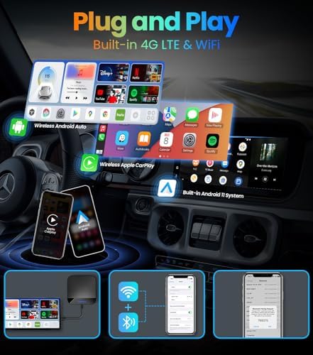 - [Wireless Freedom with CarPlay & Android Auto]: Bid farewell to cable connections! Magic AI Box allows you to effortlessly connect your iPhone or Android device wirelessly to your car's infotainment system, ensuring a seamless driving experience. With wireless CarPlay, use your iPhone for calls, messages, music, and directions through Siri. It's truly plug-and-play, and you can effortlessly switch between CarPlay and Android Auto
