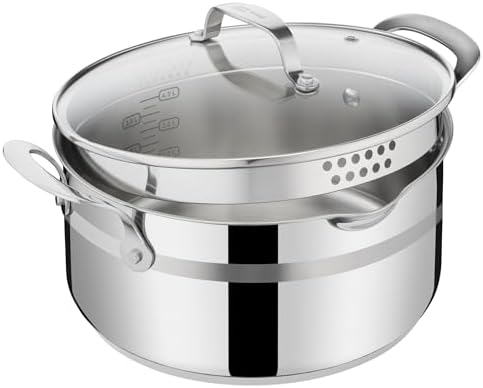 Jamie Oliver by T-fal Cook Smart 10-Piece Cookware Set, Uncoated Stainless Steel, Robust, Fast Heating, Even Cooking, Riveted Handle, Induction safe, Oven and dishwasher safe