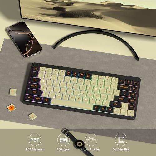 dagaladoo Low Profile keycaps Set,Double Shot PBT keycaps 60 75 100 Percent,Beige/Black/Orange Custom Keyboard Key caps for Most MX Switches Mechanical Keyboard