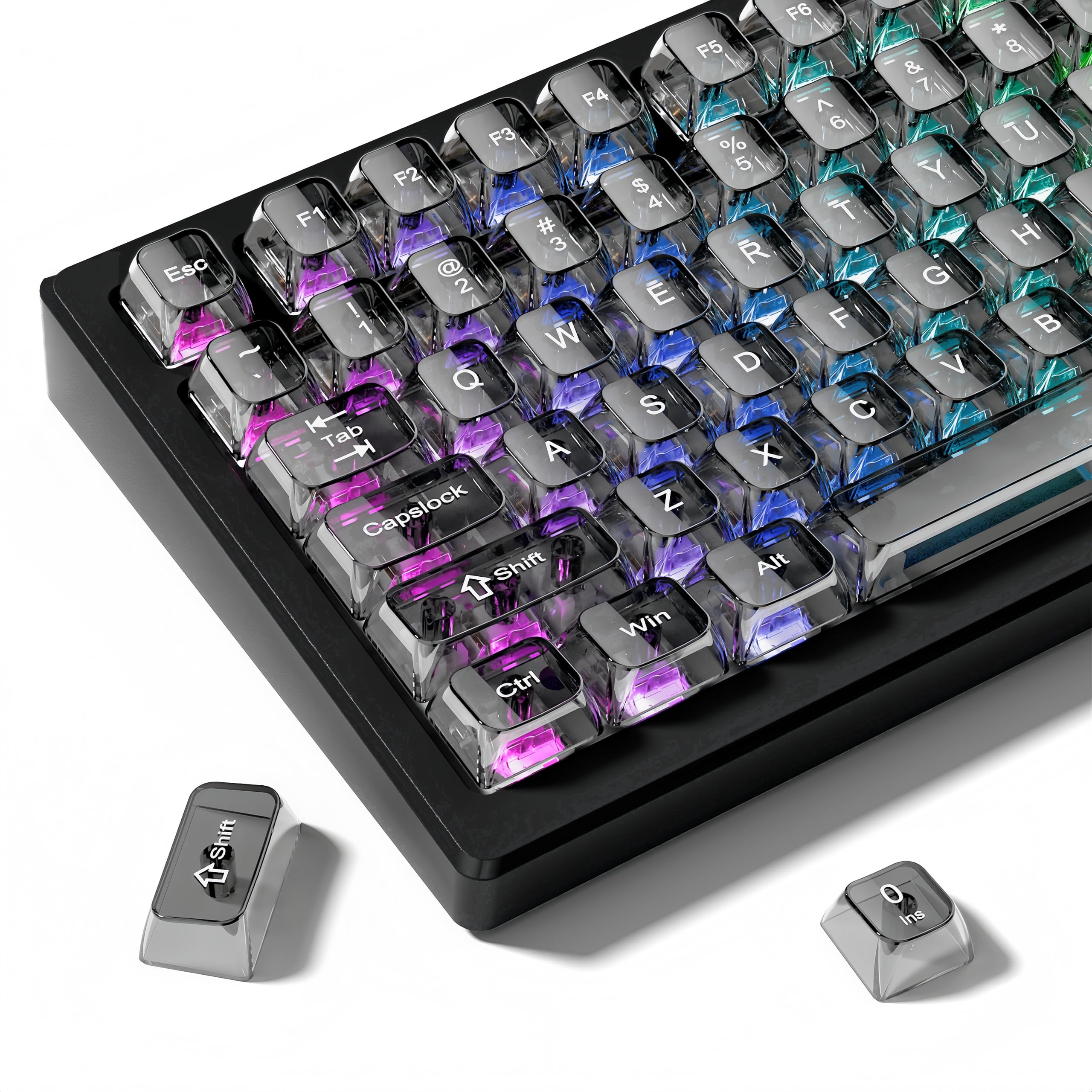 - 【Nine transparent keycaps】This low shaft key cap set comes with 129 opaque key caps and nine transparent supplementary key caps,Bring more options to your keyboard.