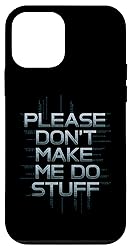 Perfect for programmers, coders, IT pros, and computer science geeks who prefer to let their code do the work! This "Please Don’t Make Me Do Stuff" design is great for introverted tech enthusiasts who love humor and laziness in equal parts. Ideal present for software developers, web designers, engineers, or any tech nerds in your life. Perfect for birthdays, holidays, Christmas, hackathons, or as a fun gag present for coworkers or classmates who relate to doing the bare minimum. Two-part protective case made from a premium scratch-resistant polycarbonate shell and shock absorbent TPU liner protects against drops Printed in the USA Easy installation