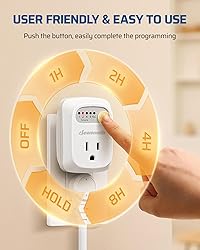 [Easy to Operate & Use] Experience effortless operation with our countdown timer; simply press the button to set your desired time options, offering you flexible and convenient control; streamline your tasks and save time and effort effortlessly [Timer Options] Simply press the setting button to cycle through timer modes: 1 hour, 2 hours, 4 hours, 8 hours, always on, and off. With multiple time selections, you can meet a variety of usage needs, ensuring the perfect ambiance for any occasion [Safety & Energy Saving] Automatically cuts off power when time is up, preventing overcharging and overheating; this feature not only saves energy and reduces electricity bills but also helps extend battery life; perfect for eco-conscious users [Wide Application] The timed outlet plug is perfect for a variety of devices, including curling irons, straighteners, hair dryers, electric irons, coffee machines, Wi-Fi routers, plant lights, indoor lamps, and other electronics; keep your essential appliances powered and organized; Note: Do not exceed the maximum power [Specifications] Equipped with 2pack 3-pin outlet, this outlet timer operates at 125V, 60Hz, with a resistive load capacity of 15A (1000W for tungsten) and a ballast rating of 120VAC at 8.3A (1/3HP); certified by UL for your safety and peace of mind