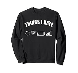 - Things I Hate - Funny gift programmer, computer gaming, e-sports gamer, gamer clothing, Esports brawl outfit. Fun for kids, boys, girls, adults women and men who love the internet and mobile phone. Charging battery, WiFi, WiFi, mobile phone. Saying gift video charging, mobile phone battery empty, WLAN network, mobile network. Funny programmer gaming gadget gift computer console gaming, internet technology techwear. Nerd Geek gift for birthday, Christmas, Father's Day, father, dad, husband, boy. Funny gift programmer computer gamer children men from funny gaming nerd saying gifts men children