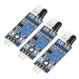 - Description: The sensor module is adaptable to ambient light. It has a pair of infrared transmitting and receiving tube. Transmitting tube sends out a certain frequency IR which will be reflected when detecting obstacles (reflecting surface) and received by receiving tube. After processing with comparator circuit, green light is on and output interface outputs digital (a low voltage level ). Detection distance can be adjusted with the potentiometer, effective distance range 2~60cm, working voltage 3.3V to 5V. Features: Sensor module output port OUT can be directly connected to micro-controller IO port, also can drive a 5V relay directly. Comparator uses the LM393 chips, stable performance. Can use 3 to 5V DC power supply.When power on, the red power indicator light is on. Designed with 3mm screw holes for convenient fixation and easy installation; Each module has already adjusted threshold compare voltage with potentiometer well, so please do not arbitrarily adjust potentiometer. Specifications: Working Voltage: 3.3~5V Detecting Range: 2~30cm Detection Angle: 35° Wiring: VCC-VCC; GND-GND; OUT-IO Size: 4*1.5cm/1.5*0.6in Quantity: 5pcs Weight: 3g(approx.) Module Interface: VCC: External connection of 3.3V-5V voltage(can be directly connected to 5V micro-controller and 3.3V micro-controller) GND: External GND OUT: Digital output port(0 and 1) Package Includes: 5 x Modules