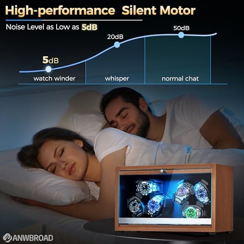 ANWBROAD Watch Winder 6 with LED and Super Quiet Motor 4 Rotating Modes Watches Winder box Watch Shaker with Type-C Adapter UJWW003A