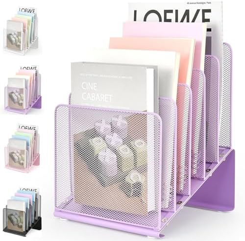 File Organizer for Desk, Desk Organizer with 5-Section Vertical File Rack, File Folder Organizer (Purple)
