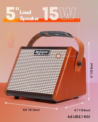 - Powerful Sound Output: Compatible For various guitar types and playing styles, the Leo Jaymz 15W Portable Electric Guitar Amplifier boasts a 5" high-performance loudspeaker that produces rich, dynamic, and robust sound, making it perfect for both practice and performance settings.