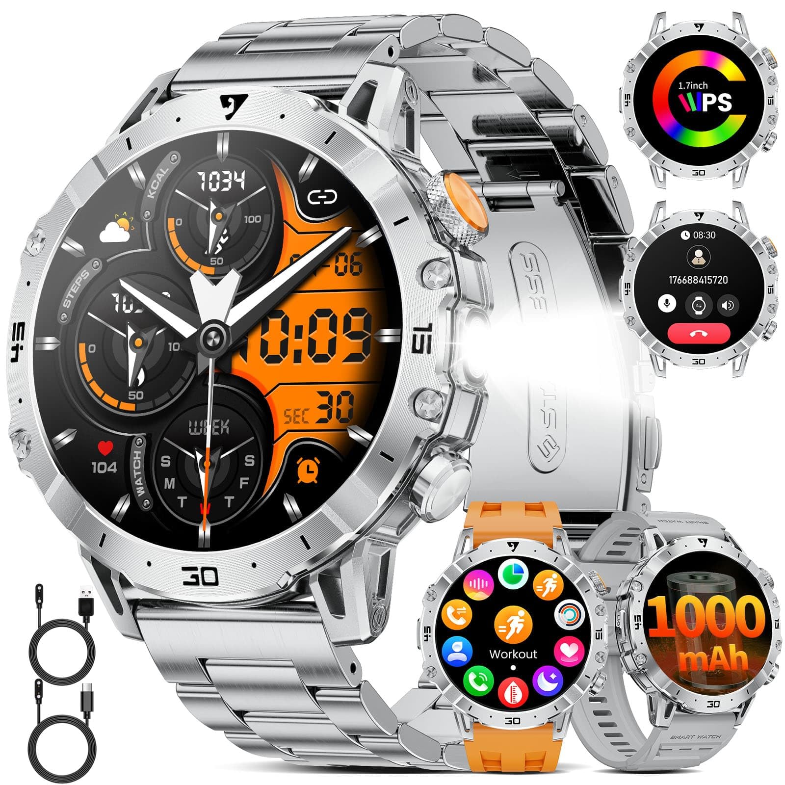 - 🔋【Bluetooth Calling&Message Notifications】This men's outdoor smartwatch is equipped with Bluetooth 5.2, ensuring faster and more stable connections. It features a 60dB speaker and noise-cancelling microphone for clear calls. Once paired with your smartphone, you can easily answer, make, and hang up calls, play music, and view message notifications (SMS, Facebook, WhatsApp, Tiktok, etc.). Use your voice to issue commands, and the voice assistant will take care of the rest.