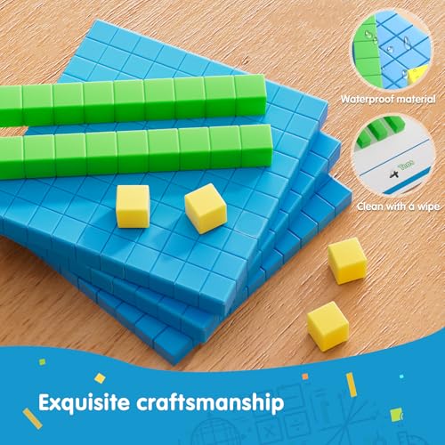 • 【Educational Base Ten Blocks Toys】It is the perfect size for a child's small hands.This linking cubes helpful for students to learn 10 concepts,place value,number sense, decimals, operations,addition, subtraction.