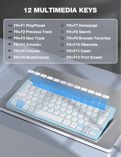 - 【12 Convenient Function Hotkeys】The wireless keyboard features a scissor-key design that aligns perfectly with your fingertips, offering a comfortable and quiet typing experience. This compact wireless keyboard comes equipped with 12 multimedia hotkeys, allowing for easy access to music playback, web browsing, email, and more, enhancing convenience and efficiency.