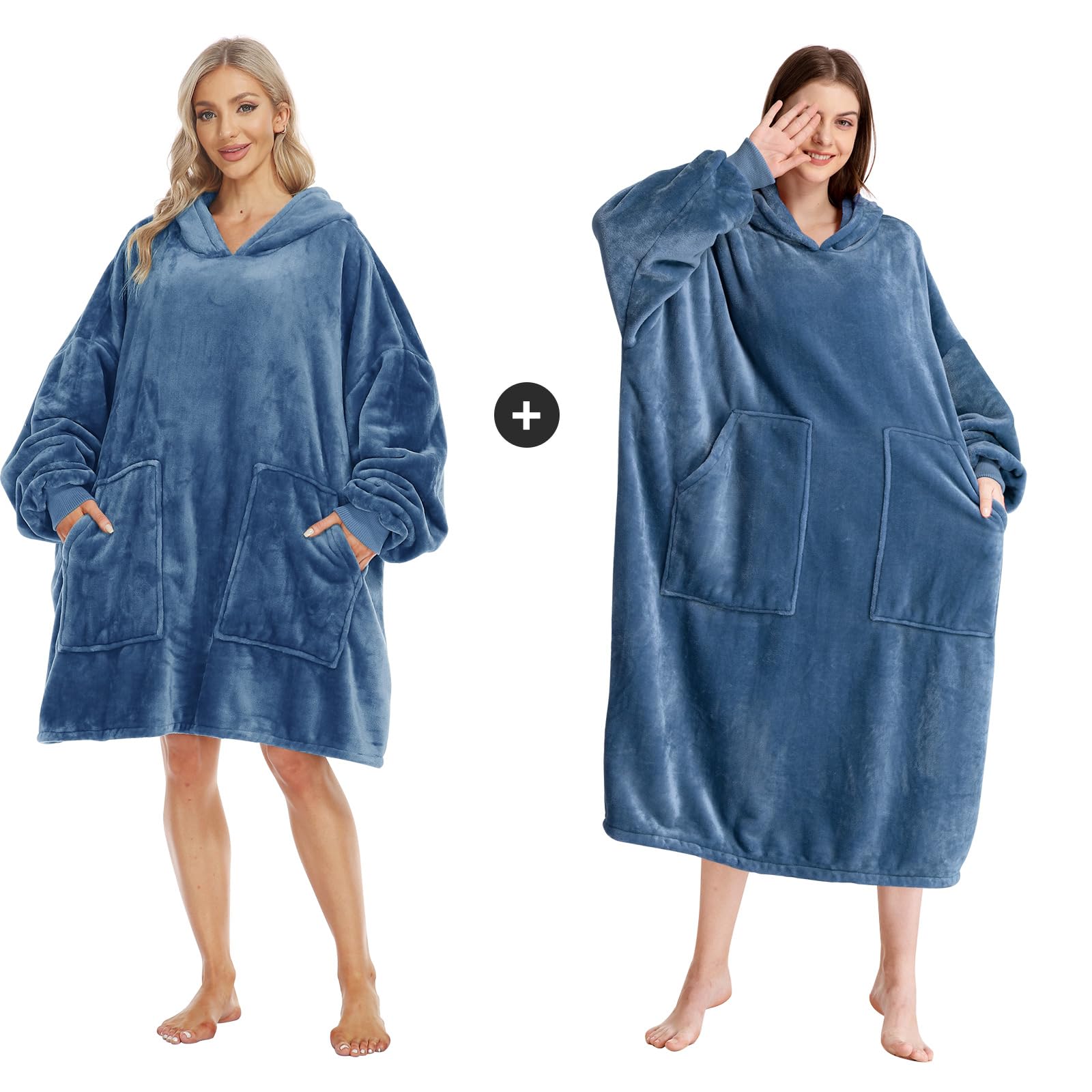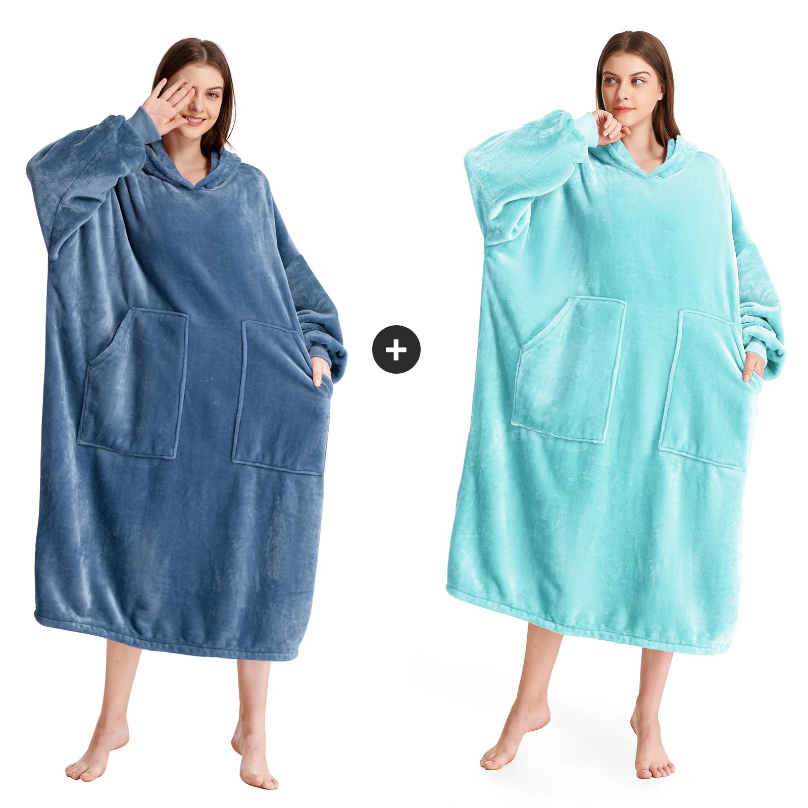 Kipswiza 2 Pack Gifts - Teal Standard and Long Blanket Hoodie, Double-Sided Flannel