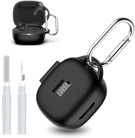 [3 in 1] for JBL Live Pro 2 Case Cover with Cleaner kit, Logo Visible Design Scratch Resistant Shockproof Silicone Protective Cover for JBL Live Pro 2 Earbuds with Carabiner-Black