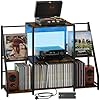 Record Player Stand, Vinyl Record Holder Up to 300 Albums, Large Player Table with Power Outlet and LED Light, Vintage Storage Rack for Magazine, Book, Files, Albums