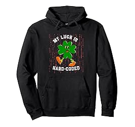 - Celebrate Saint Patrick's Day with this tech-inspired merch! Featuring a shamrock, and computer code symbols and the text 'My Luck Is Hard-Coded,' it's perfect for programmers, tech fans, and Irish enthusiasts. Show off your geeky pride with this unique holiday design.