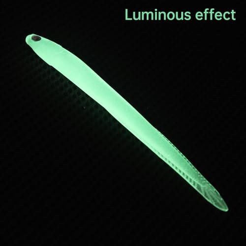5pcs Fishing Lures Soft Bionic EEL, Artificial Bait EEL Lure for Bass Pike Trout Perch, Fishing Tackle for Saltwater Freshwater (Luminous)