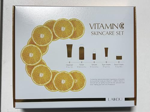 - VITAMIN C SKIN CARE SET - Contains cleanser, toner, face serum, eye cream, face cream, provides all-round nourishing and moisturizing, easy daily skin care