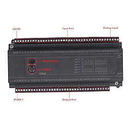- 1. Download and Comm: Supports 1 way RS232 and 1 RS485 comm port, can communicate with programming software simultaneously; Download speed compatible with 9.6-11.52Kbps, supports programming, downloading, debugging, and monitoring (does not support monitoring writing) 2. Touch Screen Comm: The three communicating ports can communicate with the touch screen simultaneously, for FX3U protocol selected and comm parameters of 19200, 7, E, 1, with strong compatibility 3. Power Supply: The PLC control board is powered by DC24V, and under the condition that the output relay is not turned on, the static current is 40MA, and the starting current needs to be 1A 4. Analog Input Output: Default 4AD 0-10V input, 0-10V output; 6 ways high speed input, X0/100K, X1-X5/10K (X0 and X1 use as phase 100K); High speed output Y0-Y5 200kHz Y6-7 100kHz 5. Enhanced Security: Enables super encryption function with keyword 12345678 to prevent program upload and password modification, clearing program upon password change to deter password cracking software Specification: Item Type: PLC Control Board Material: ABS Size: Approx. 225 x 110 x 78mm / 8.9 x 4.3 x 3.1in Download Speed: 9.6-115.2Kb Memory Capacity: 32000 Steps Input Points: 32 Output Points: 28 Output Type: Relay Output Current: 3A Load: 24V/ High Speed Count: 2/100K Pulse Output: None Analog Input: 4AD 0-10V Analog Output: 0-10V 485: 1 Way 232: 1 Way Power Supply: DC24V How to Use: Follow the electronic manual for instructions Package List: 1 x PLC Control Board 1 x Download Cable (3 Meter)