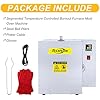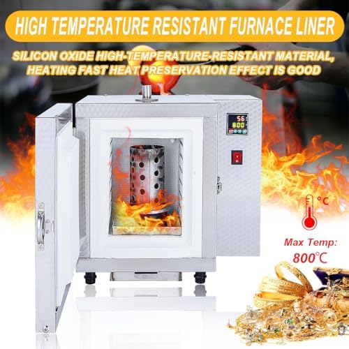 Intelligent Segmented Temperature Control: The Jewelry Casting Burnout Furnace Oven Machine is equipped with an advanced PID module, which is a digital control system that provides accurate and convenient temperatures for melting metals. The display is clear and easy to operate. Heating program: Stage 1: 60 minutes to 180 degrees, hold for 90 minutes. Stage 2: 60 minutes to 350 degrees, hold for 90 minutes. Stage 3: 60 minutes to 580 degrees, hold for 120 minutes. Stage 4: 60 minutes to 900 degrees, hold for 120 minutes. Section 5: 30 minutes to cool down to 780 degrees, ready for inverted mold casting. Exhaust And Wax Drain Design:The oven machine is designed with an additional exhaust port to prevent internal gas deposits from triggering hazards during baking. Wax vent and wax collection have also been added to prevent melted wax from contaminating the oven machine for easy collection and cleanup High-Temperature Resistant Furnace Lining: Furnace lining embedded with silicon oxide material for fast heating and good heat preservation. Resistance wire heating, the temperature can reach 800℃ in 30 minutes. User-friendly Design: Three-layer furnace structure, heat insulation, and flame retardant, safe and efficient. Small size, light weight, energy saving 30%. Wide Application: Mold oven machine is suitable for baking plaster molds for jewelry crafts. Ideal for individual studios or jewelers.
