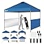 CROWN SHADES 10x10 Pop up Canopy Tent Instant Canopy with 150D Silver Coated Fabric Including 2 Half Sidewalls, 4 Ropes, 8 Stakes, 4 Weight Bags, STO 'N Go Bag, Grid Grey