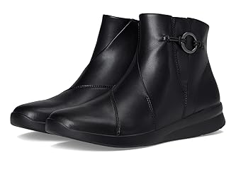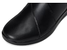 Premium black leather upper with hardware detail Ultimate Comfort foam footbed delivers lasting cushioning Stretch gore insert lends a comfortable, flexible fit and assists easy on/off Flexible TR (thermoplastic rubber) sole delivers ultimate underfoot traction