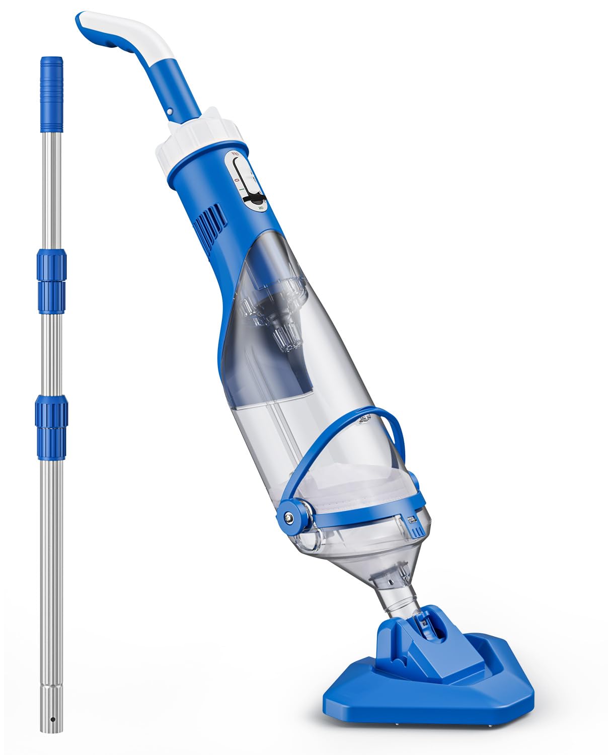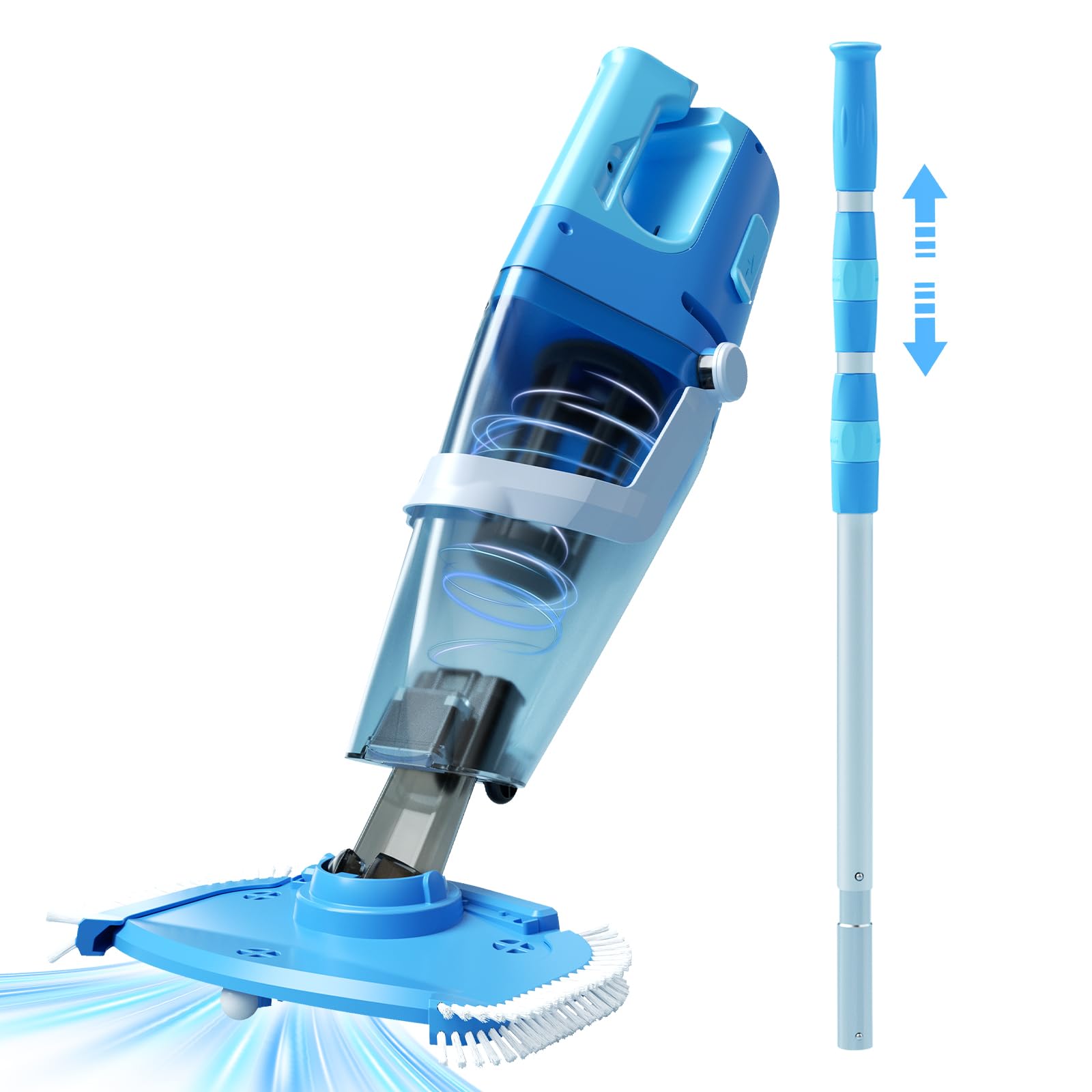 Cordless Pool Vacuum with Telescopic Pole, 18.5 GPM Powerful Suction, 1.5H Supercharge Technology, Handheld Rechargeable Pool Vacuum Cleaner for Above Ground/Inground Pools, Hot Tubs, Spas