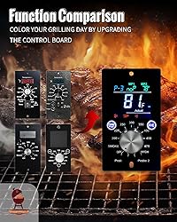 - This versatile grill thermostat control panel is compatible with a wide range of grills, including Traeger (Bac236, Bac365, BAC288 Traeger Select Pro), Pit Boss, Z Grills, and Asmoke. Please refer to the image for specific models.Equipped with a PID controller, it offers 3 distinct temperature programs tailored to grills with different cooking surface areas, ensuring consistent temperature maintenance at your desired set point.The system also features automatic connection parts fault detection for the igniter, auger, and fan. If any fault occurs, the corresponding icon appears on the screen, accompanied by a flickering display and a beeping sound to alert you. The built-in cool-down assistant reduces the risk of fuel pipe scorching, ash buildup in the burn pot, and hopper backfire, enhancing the grill's longevity.Additionally, the smoke mode includes 1 option for tabletop grills and 6 options for other models, infusing your food with a delicious smoky flavor.Note: As the grill reaches the set temperature, the PID will regulate it by intermittently cycling the auger and fan. This may produce a normal "puffing" sound during operation.