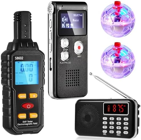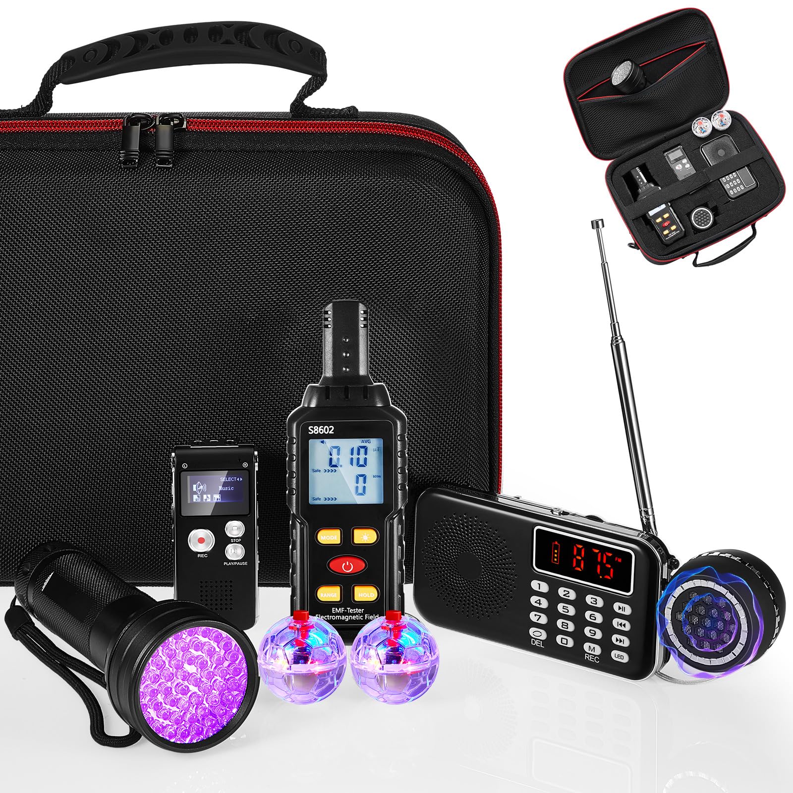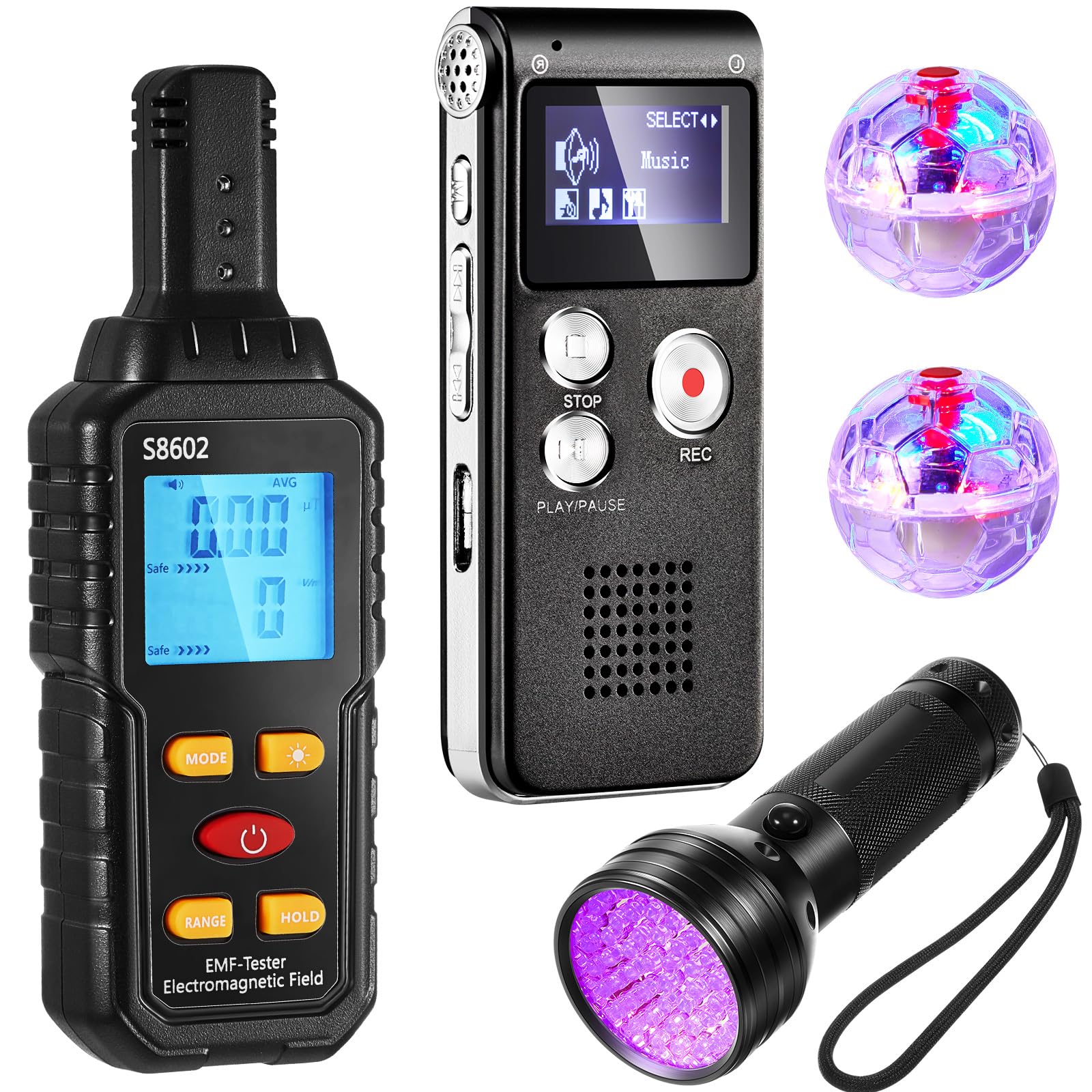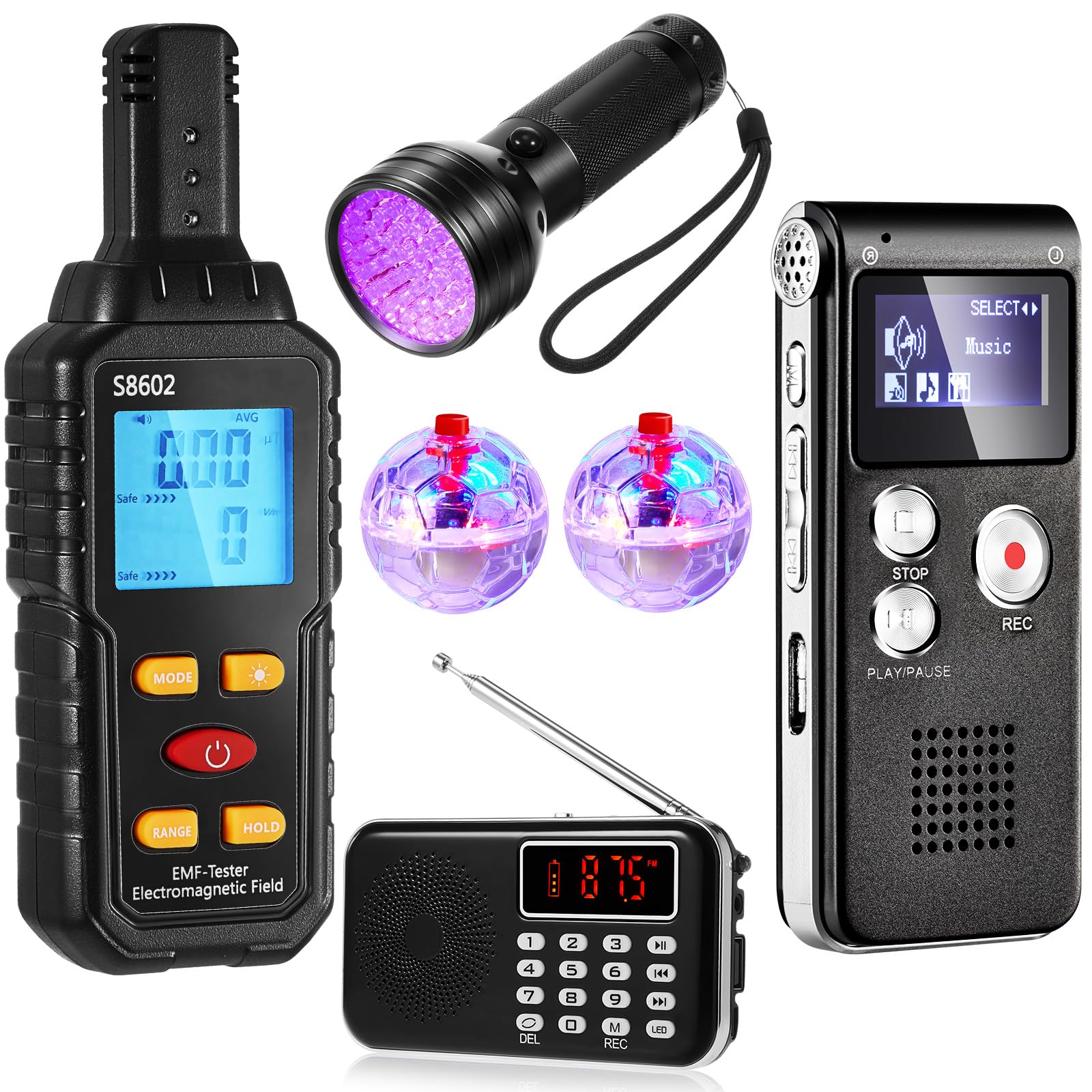 Dunzy 5 Pcs Ghost Hunting Equipment Kit Ghost Hunting Box with 1 Emf Meter 2 LED Balls and 1 Digital Voice Recorder Paranormal Equipment Emf Meter Detector for Home Outdoor