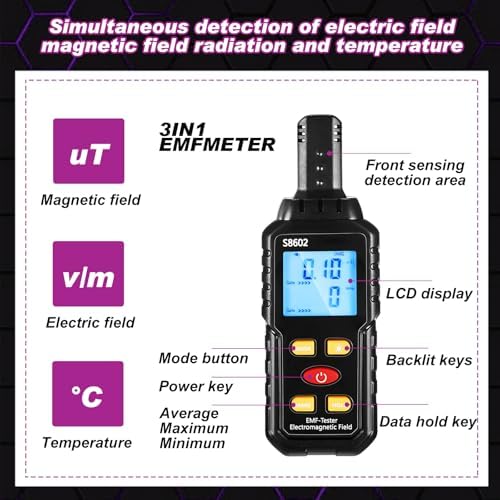 - Accurate Detection: the Electromagnetic radiation detector, managed by a control microchip, measures magnetic radiation fields in MG/µT and electric fields in volt/meter; This allows for accurate detection of paranormal activities, displaying thees radiation value on the crisp LCD digital display; Note: this EMF meter cannot test RF value