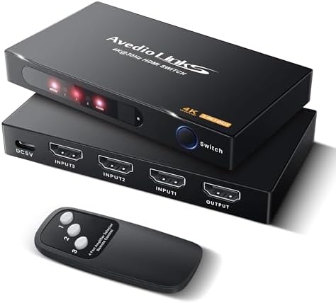 HDMI Switch 3 in 1 Out, 4K HDMI Switcher with Remote, avedio links 3-Port HDMI Selector Switch Support Ultra HD, 1080P, 3D, HDCP1.4, Auto-Switching, Compatible with PS5/4, Xbox, PC (Light Black)