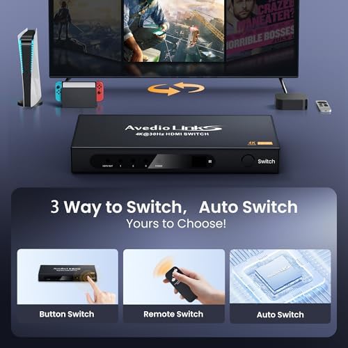 - 4K High Resolution - This hdmi switch supports 4K@30Hz and lower resolutions like 1080p, 720p, and 480i for backward compatibility. Support HDMI 1.4 and HDCP 1.4, it ensures smooth playback without signal loss. Note: Gaming devices support up to 1080p output. Enjoy stable audio and video transmission.