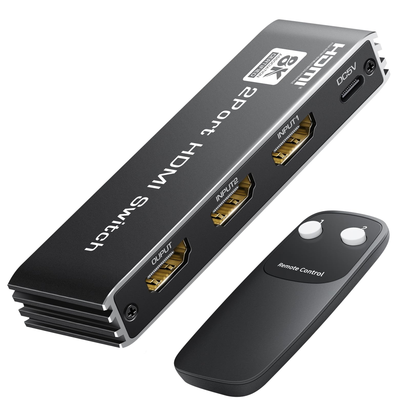 - 2 Way to Switch - The hdmi switch box supports both remote and manual switching, allowing you to switch sources easily from the sofa or manually at any time. It also features automatic signal detection for seamless auto-switching. Note: The switch does not have a memory function.