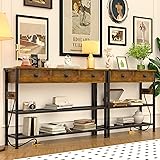 【Integrated Power Hub – Stay Charged Anywhere】Equipped with 2 USB ports & 2 standard outlets. Power phones, lamps, tablets, or even an aquarium—wherever you need it. Power board attaches to either side without taking up tabletop space. 【More Storage, Less Clutter】Includes 3 drawers with smooth pull and safety stops. Two mesh shelves below provide ample space for baskets, books, and décor. A 47" long surface keeps your daily essentials within easy reach. 【Narrow Profile, Versatile Use】Sleek black finish and slim silhouette make it a perfect fit for tight spaces. Ideal as an entryway table, sofa console, behind-the-couch table, hallway organizer, or kitchen coffee bar. 【Built to Last – Stable & Strong】Crafted with high-quality MDF and a reinforced metal frame. Adjustable feet keep it balanced on uneven floors. Comes with velcro straps for cable management. 5ft power cord adds placement flexibility. 【Eco-Conscious Design – FSC Certified】Top and drawers are made from FSC-certified wood, supporting responsible forestry. Durable materials and timeless design ensure this table serves your space for years to come.