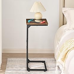 【SPACIOUS TABLE TOP】This couch side table features a generous surface area, measuring 11.8"D x 15.7"W x 26.4"H . The roomy tabletop is perfect for various needs, easily accommodating laptops, magazines, or books, making it an ideal c side table for couch use 【C-SHAPE DESIGN】The innovative C-shaped design allows this narrow side table for couch to slide effortlessly under sofas or beds, functioning like a convenient tv tray table. It's perfect for keeping your phone and coffee within easy reach 【VERSATILE USE】This sofa table tray is adaptable to multiple settings. Use it as one of those handy couch tables that slide under, place it beside a lounge chair for magazines and beverages, or next to the bed for alarm clocks and lamps. It's one of the best small end tables for small spaces, maximizing functionality in compact areas 【STURDY & DURABLE】 Triangular metal joints and an extended base frame enhance the stability of this c shaped end table for couch. Additionally, adjustable feet ensure this sofa tray table remains steady even on uneven floors, providing a reliable surface wherever you need it 【EASY ASSEMBLY】 This C side table for couch comes complete with detailed instructions, clearly labeled parts, and all necessary assembly tools to help you set it up quickly. If you have any questions during assembly or use, our customer service team is always ready to assist you