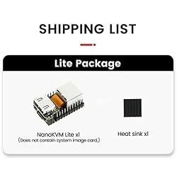 Package Include:1pcs* NanoKVM Lite Set 【Multi-function Interface】NanoKVM RISC-V Linux Remote Control Operations Server includes an HDMI input port, which can be recognized by the computer as a monitor to capture the computer's screen; and a USB2.0 port to connect to the host computer, which can be recognized as a HID device such as a keyboard, a mouse and a touchpad. At the same time, using the extra storage space of TF card, it can be mounted as a USB flash drive device. 【Support 100M/10M Hundred Gigabit Ethernet】NanoKVM RISC-V Linux Development Board comes standard with a 100M Ethernet port for network transmission of video, control signals, etc. The NanoKVM RISC-V Linux Development Board comes with a 100M Ethernet port as standard. In addition, the Full version also comes with an ATX power control port (USB-C form factor) for remote control and host switching status, and an OLED display underneath the Full version's casing for displaying local IP and KVM-related status. 【Server Management Support】NanoKVM Maintenance Server can be used to monitor servers in real time, get the running status of servers and control them. Support remote desktop, switching machine: NanoKVM gets rid of the limitations that the host computer must be connected to the Internet and the system software, and can be used as the external hardware of the host computer to provide the function of remote control directly. 【Meet the different needs of users】NanoKVM Lite is the basic version of the configuration, suitable for individual users with a certain degree of DIY ability and batch demand for enterprise users;