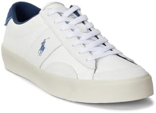 Styled with a signature embroidered Pony at the side, the Polo Ralph Lauren Sayer Sport shoes are perfect to pair with different outfits and styles. The leather and textile upper features a "Polo Ralph Lauren" patch at the tongue and a "Polo" debossed at the heel. These lace-up sneakers are made of a padded man-made insole and man-made lining. They come with two sets of laces and reinforced heels with a nubuck heel tab. Round toe design. Textured rubber outsole.