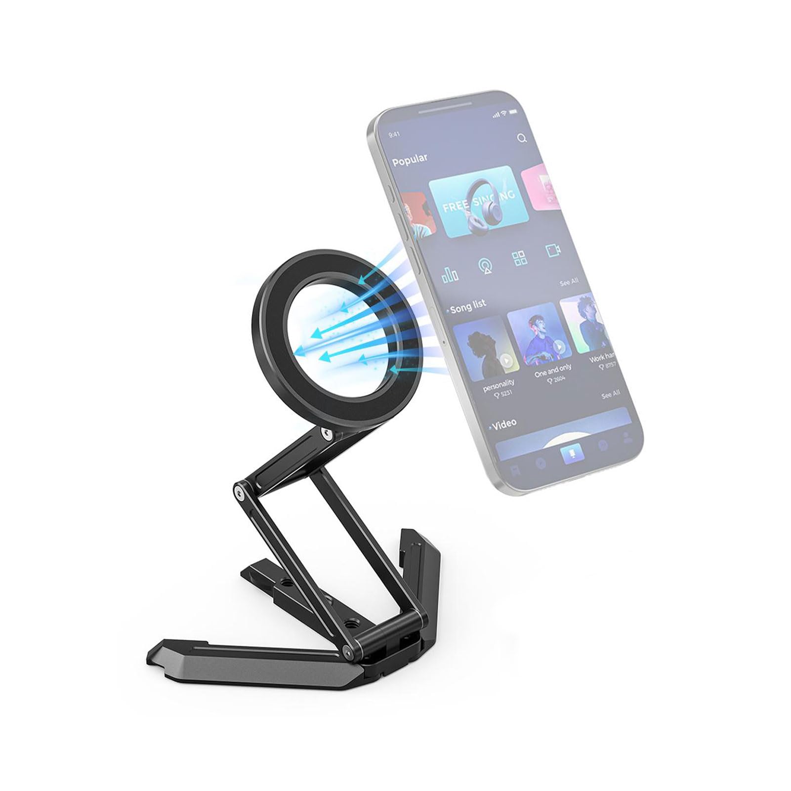 - Freedom of Angle Adjustment: The Magnetic Desktop Phone Stand's 200° precision damping mechanism allows you to precisely adjust the angle, providing a customized experience for a variety of activities such as watching videos or making video calls.