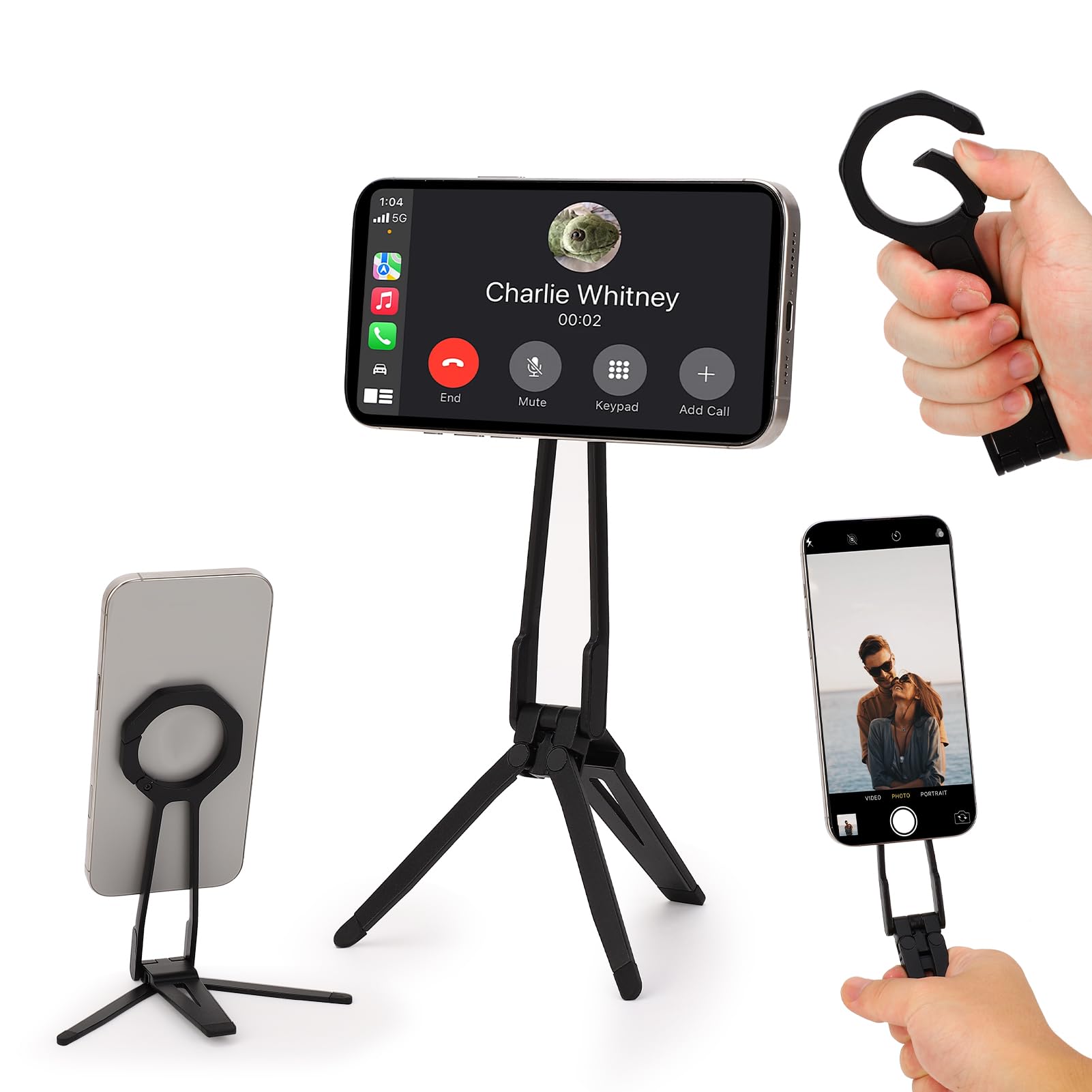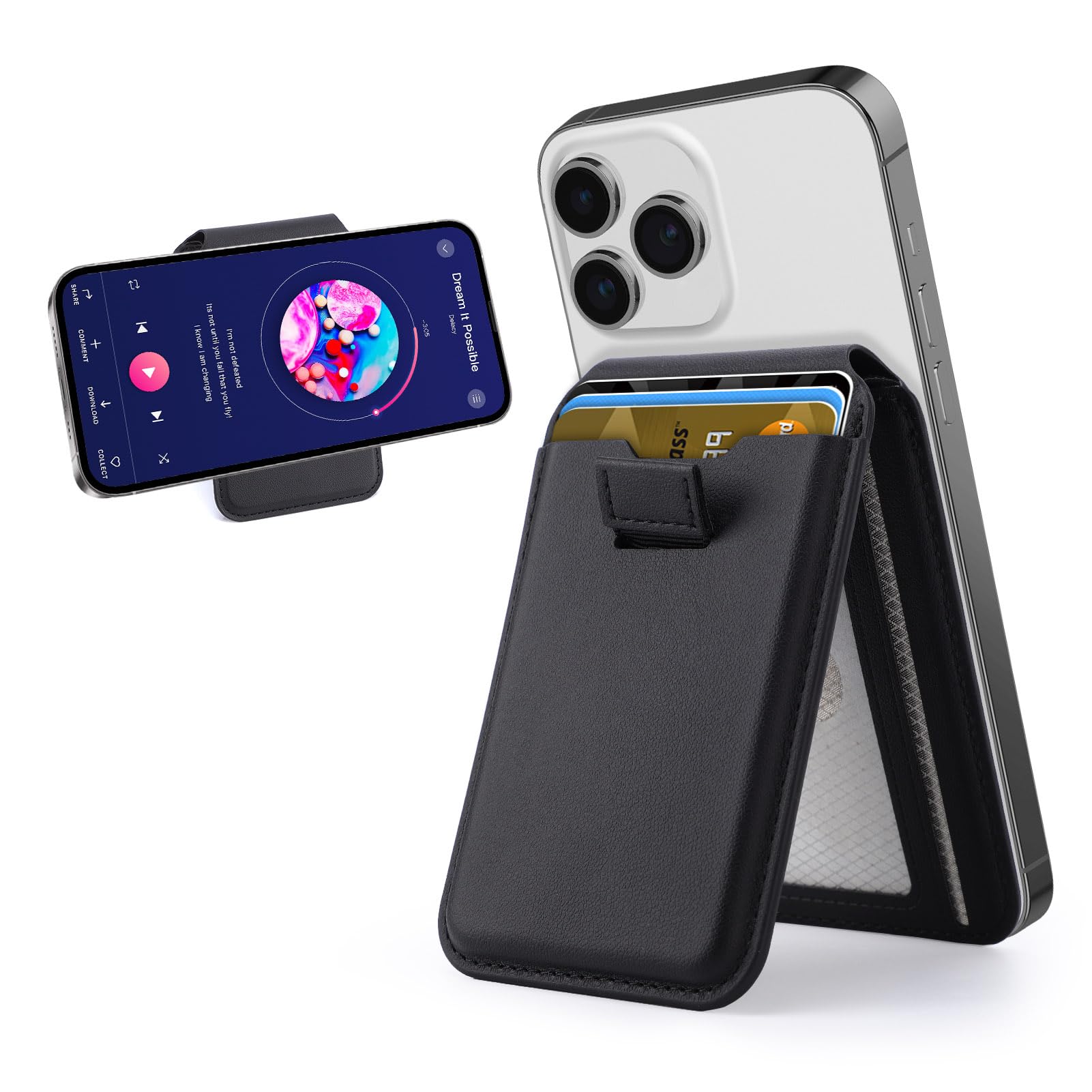 Phone Stand, Foldable Magnetic Phone Tripod, Angle Adjustment & Strong Magnets PU Leather Phone Stand, Compatible with All Smart Phone 16/15/14/13/12 (Black)