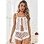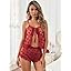 Kolagri Sexy Women Lace Pajamas Lingerie Set High Waist Sheer Sleepwear Bow Ties Cami Shorts Set