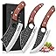 - Versatile Chef Knife Set: This japanese kitchen knife set includes a 6.2" butcher knife for smashing bones, a 6.2" chef’s knife for dicing vegetables, and a 5.9" viking knife for precision work. Conquer kitchen prep, backyard BBQs, and camping trips—these powerhouse butcher knives tackle any cutting task