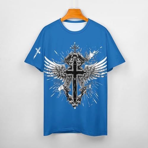MARSVOVO Men's Vintage Oil Painting Faith Jesus Cross Print Casual T-Shirts Christ Crewneck Short Sleeve Shirts for Men
