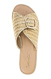 - A texture-rich woven raffia upper tops this breezy slide sandal made with a nicely cushioned footbed to keep you comfy as well as stylish