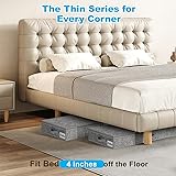 LOW PROFILE UNDER 4 INCHES but Ample Capacity: Measuring 33.8" x 15.8" x 4", these under bed storage containers of the Slim series can fit effortlessly under most beds and sofas, while providing ample space for clothes, comforter, bedding, shoes, toys and blanket storage. Their low profile makes them a versatile solution for closet organizers and storage, especially in dorms and apartments where space is tight. Perfect for Home and Dorm Rooms: This under the bed storage container under 4 inches fits seamlessly with dorm beds and closets. The compact size and sturdy design makes them a college essentials storage tool for students starting or going back to school. Thoughtfully designed with three reinforced handles and double smooth zippers, the storage container is easy to pull out and carry, perfect for year-by-year moving in school dorms. Waterproof, Soft, and Long-lasting Fabric: Crafted from premium ultra-thick linen fabric that is waterproof, our underbed storage containers protect your belongings from moisture, dust, and damage. The soft yet durable material ensures long-lasting use, making the under bed organizer a perfect choice for safeguarding your seasonal items or everyday essentials while keeping them clean. Durable and Sturdy Construction: Unlike cheaper products that are flimsy and without support, this container is built to last. Featuring reinforced sides and a solid bottom, it can maintain its shape and securely hold your belongings. Whether you’re storing heavier items like blankets or lighter clothing, the reliable protection and support ensures that your items are well-organized and safe. Premium Foldable Design: Our under-bed storage container is both foldable and free-standing with the PP boards inside, making it easy to set up or collapse for convenient storage when not in use. The narrow under-the-bed storage bins can be hidden to fully utilize space. With collapsible design, the storage bins can aximize space while providing a clean, organized look to your bedroom or dorm room.